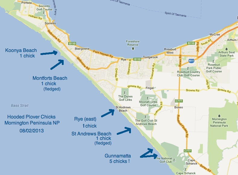 Below is a map indicating the location and number of chicks currently in the Mornington Peninsula National Park.